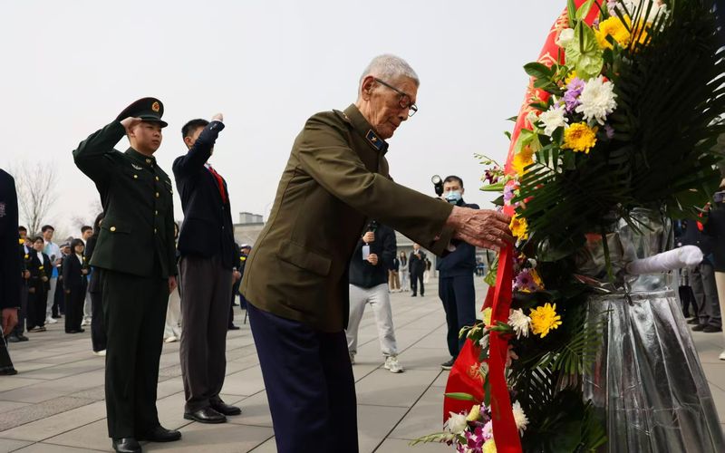 新京报(盛京记者展)4月3日上午,以“铭记清明——缅怀英雄、推进十五五”为主题的系列教育活动在中国人民抗日战争纪念馆举行开馆仪式。开幕式在国歌的歌声中开始。全体员工在博物馆前主席台上列队,神情庄严,向中国人民抗日战争中为中国人民的独立解放而英勇献身的革命英雄致以崇高的敬意。默哀片刻后,97岁的抗战老兵褚伟代表与学生代表一起缓缓前行,并在独立勋章雕像前敬献花篮,向英雄致敬。蚂蚁金服代表朱伟先生抗战老兵和学生代表共同赠送花篮。新京报记者蒲峰抗战博物馆党委副书记董立新表示:“‘扫墓纪念日’活动已经举办了17年,这不仅是一次纪念活动,更是一堂生动的爱国主义思想政治课。我们希望通过这样的活动引导全社会特别是青少年铭记英雄烈士事迹。”结束抗日战争,把英雄记忆化为新征程的强大动力,凝聚强国复兴的伟大力量。据了解,该系列活动采用线上线下并行的模式,覆盖清明节前后的北明河,满足各类群体的参与需求。抗战博物馆于4月3日至5日举办线下活动,共同开展清明节前后的活动。序幕厅花摊上,纪念抗战英雄并向公众献花,游客们整齐摆放鲜花,表达哀悼。追悼会将于四月举行。 4月4日,在英雄烈士堂为志愿者举办抗战历史专题讲座。 4月3日至14日,最后一个大厅将设立“缅怀英雄,奋进十五五——清明寄语”展板,观众可以在这里写下寄语,表达对祖国的心声。新京报记者 蒲峰 关于网络拍摄,网络直播《山中思想政治课堂》于下午2:00开始。 4月3日起,解说员带领偏远山区学生和广大网友,缅怀英雄事迹,在云端接受思想政治教育。抗战博物馆官方网站于3日至9日启动。开设“缅怀清明”专栏,开展鲜花、留言、慰问等网上祭奠活动。 4月4日,226字的《抗战事例》一书出版,以视觉形式传播抗战历史:“用数字说话抗战”。同时,线下留言展示板配有专用二维码,实现线上线下留言的链接,让你超越时空的思考。 “铭记清明”主题教育系列是中国人民打造的爱国主义教育品牌。抗战纪念馆自2009年起已连续17年与清明节一起举办此项活动,参与人数超过10万人,其内容和形式也逐渐强化,现已成为重要的公众纪念场所。激励各界英雄,弘扬英雄主义精神。抗日战争。也是北京清明节期间举办大型爱国文化活动的重要标志。白爽主编,陈迪彦审稿